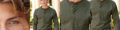 - Fashion collar with three button placket and embossed metal buttons with plastic rims