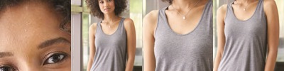 - Heather colorblock on upper chest, back and shoulders