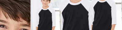 - Contrast-color 1x1 rib collar and raglan sleeves