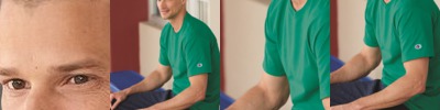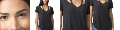 - 85/15 polyester/spandex side inserts, V-neck and sleeve cuffs