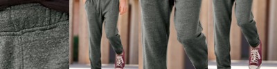 - Spandex in waistband and cuffs