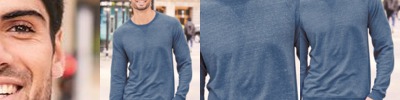 - 2x1 ribbed collar, V-notch, cuffs and waistband