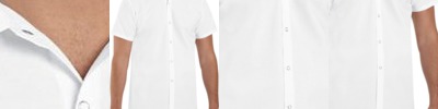 - Two button-thru, hex-style pockets with angled bartacks, bartacked pencil stall in left pocket