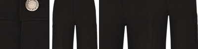 - Two button-thru, hex style pockets with angled bartacks, bartacked pencil stall on left pocket