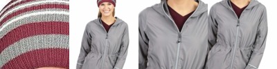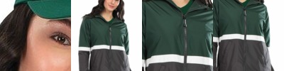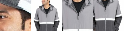 * Micron(tm) polyester is a lightweight, wind/water-resistant fabric * 100% polyester micromesh lining * Embossed inserts for subtle textured pattern * Woven label * Front zipper * 3-piece hood with spandex binding * Set-in sleeves * Front zippered pockets * Elastic cuffs * Adjustable bottom hem with hidden shockcord closure in right pocket (on Adult)