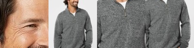 - Self-fabric mock collar with dyed-to-match quarter-zip closure