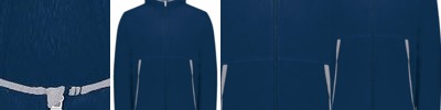- Front pouch pocket with two hook & loop closures at top of pockets with headset opening