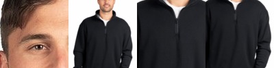 - Quarter-zip with storm flap and zipper garage
