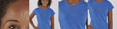 100% polyester wicking knit with color secure(r) technology that helps prevent dye migration * Wicks Moisture * Ladies' fit * Longer length and bigger chest for added comfort * Tear away label * V-neck collar * Raglan sleeves