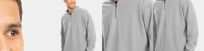 - Quarter-zip pullover style with zipper garage