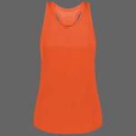 100% polyester wicking smooth knit * 100% polyester lightweight mesh back * Wicks moisture * Ladies' fit * Tag-free label * Racerback styling * Dropped tail