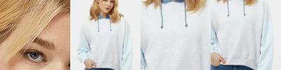 - Contrast-color hood with drawcord