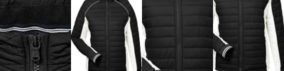 - 1x1 ribbed yarn-dyed striped cuffs and waist