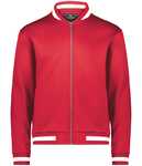 * 100% polyester double-knit * Woven label * Front zipper * Set-in sleeves * Front pockets * Dual inside pockets * Striped rib-knit collar, cuffs and bottom band