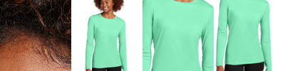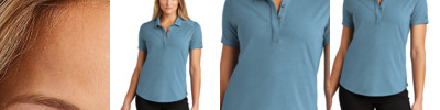 * 100% polyester wicking knit with color secure(r) technology that helps prevent dye migration * 90% polyester/10% spandex wicking mesh inserts with color secure(r) technology that helps prevent dye migration * Wicks moisture * Ladies' fit * Tag-free label * Low profile tapered collar * Raglan sleeves * Modified dropped back hem