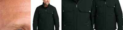 Built with workers in mind, this insulated soft shell helps keep wind and rain out, while providing plenty of pockets for tool and gear storage. 100% polyester shell with water-resistant finish bonded to water-resistant film insert and a 100% polyester brushed microfleece lining 5.9-ounce, 100% polyfill insulation diamond quilted body 3.5-ounce, 100% polyfill insulation diamond quilted sleeves Fabric waterproof rating: 1000MM Fabric breathability rating: 1000G/M2 Triple-needle stitching Rivet and snap details throughout Chest pockets with snaps, flaps and hook and loop closures Reinforced lower front pockets with concealed interior phone pocket Exposed center front zippered closure with longer pull Self-fabric adjustable tab cuffs with hook and loop closures Adjustable drawcord hem Decoration access pocket