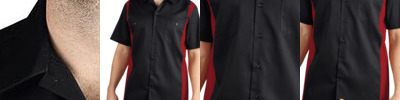 4.6 oz. mechanical stretch twill, 65% polyester, 35% cotton; Moisture-wicking fabric improves breathability; Easy-care stain-release; Comfort flex fabric for ease of movement; Pointed collar; Button-front closure; Chest pockets with button-flap closures, left pocket has pencil division; Generous fit, extra length, extra room in shoulders and chest;