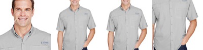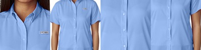 3 oz., 100% Tactel®; nylon taffeta back country cloth; Quick-dry; Omni-Shade™; UPF 30 sun protection; Performance fishing gear; Button-down collar; Vented; Utility loop; Columbia PFG logo patch on rod holder on left chest; PFG tags on left and right chest pockets;